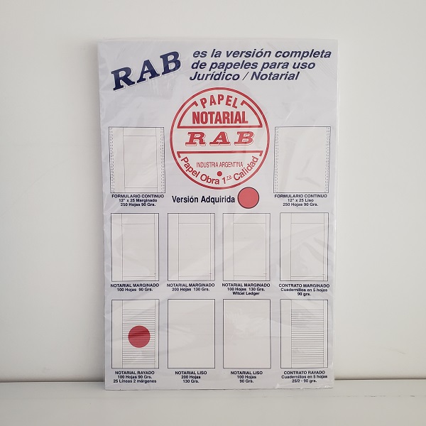 -Notarial Rayado: 25 líneas / 2 Márgenes / Oficio / 90 grs.